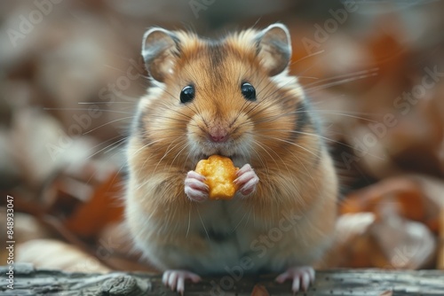 Baby Hamster: A tiny baby hamster, holding a small piece of food in its paws, sitting in a cage.