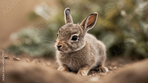 Baby hare in nature.