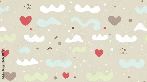 baby penguin with heart Whimsical Pattern of Mustaches and Hearts in Soft Pastel Colors on Light Beige Background a baby penguin giving a heart ิblur background, blur tiles wallpaper