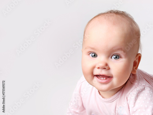 baby, portrait, caucasian, healthy, smiling, infant, toddler, happy, grey, background, empty, space, person, 1, lovely, children, children, girl, beautiful, face, soft