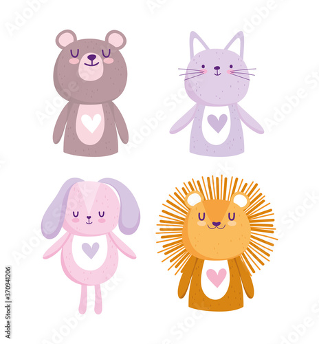 baby shower, cute cartoon animals lion cat bear and dog