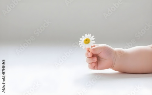baby, hand, holding, flower, daisy, children, infant, newborn, innocence, purity, gentle, delicate, small, tiny, finger, skin, soft, light, background, white, nature, bloom, growth, life, beginning, hope, care, love, family, childhood, sweet, adorable, cute, simple, minimalist, clean, bright, day, spring, summer, organic, botanical, floral, gift, present, symbol, peace