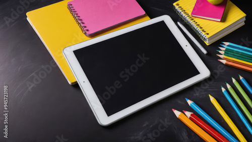 school, education, classroom, background, back, desk, book, study, supply, class, crayons, colours, board, green, blackboard, student, concept, elementary, object, pen, notebook, wooden, children, chalk, learn, space, equipment, drawing, nobody, educational, studying, open, learning, copy, design, wood, display, illustration, frame, symbol, black, paper, blank