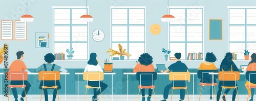 back, school, student, learn, classroom, flat, design, illustration, education, teacher, science, college, textbook, crayons, homework, subject, cognition, lesson, schedule, paper, artwork, poster, lecture, pupil, language