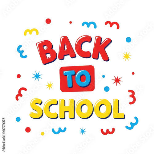 Back to school text with colorful confetti isolated on transparent background
