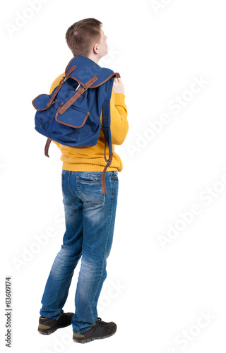 view, watching, pointing, showing, examining, finger, gesticulate, presentation, signs, back, rear, adult, background, backside, backview, behind, brunette, casual attire, caucasian, executive, gay, hand, human, isolated, jean, look, looking, male, woman, 1, people, person, portrait, posing, standing, student, studio, up, white, young