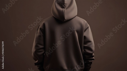 Back View of a Man in a Brown Hoodie, Minimalist Style