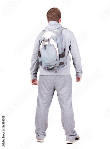 back, people, person, view, man, backpack, baggage, case, baggage, suitcase, tour tourism, holiday maker, travel, traveler, traveler, trip, vacation, voyage, watching, rear, adult, background, backside, backview, behind, brunette, casual attire, caucasian, executive, guy, hand, photogenic, human, isolated, shirt, jean, look, looking, male, 1, portrait, posing, standing, studio, thinks, up, white, young