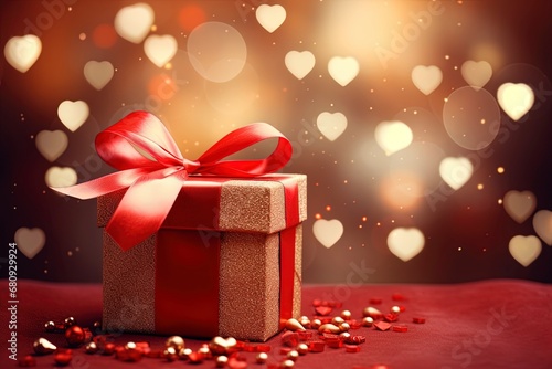 Background holiday, gift in a beautiful box with a heart with generative ai