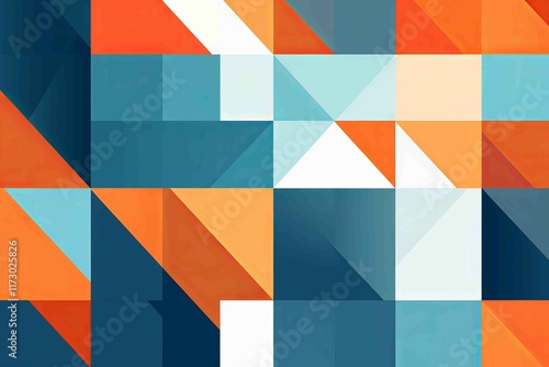 background with distinct, clean color blocks in different tones of orange, white, and blue that provide a stark, contemporary contrast