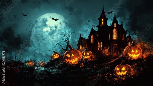 pumpkin, ghost, halloween, background, skittish, autumn, fall, orange, scarey, haunted, october, moon, house, night, castle, bat, holiday, vector, silhouette, pumpkin, illustration, horror, dark, tree, cartoon, bat, black, design, evil, cemetery