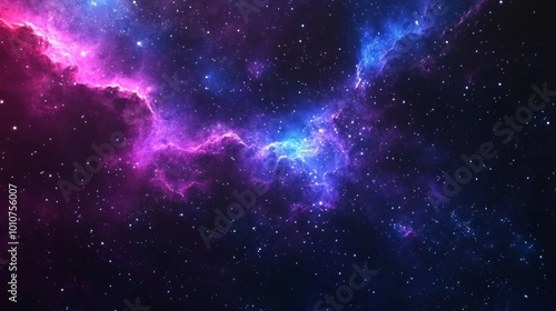 Background with stars, deep blue and purple space galaxy, featuring bright nebulae and distant stars.