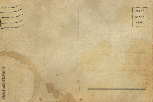 Backside of old postcard with dirty stain