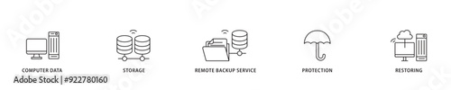 Backup icon sett lineal illustration concept with icon of computer data, storage, remote backup service, protection and restoring icon live stroke and easy to edit