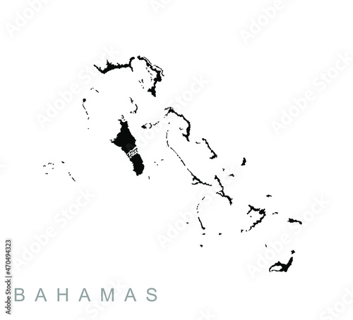 Bahamas map vector silhouette illustration isolated on white background . High detailed illustration. Caribbean country.