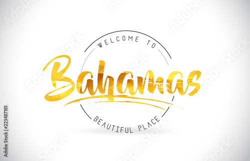 Bahamas Welcome To Word Text with Handwritten Font and Golden Texture Design.
