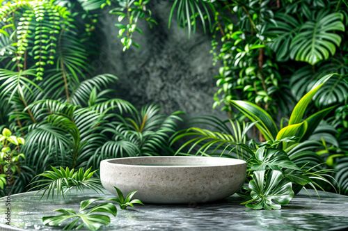 bathe, cup, runway, scene, pedestal, socle, aids, basement, setting, location, support, support, holding, platform, tray, rostrum, floor, plateau, floor, platform, presentation, exposition, plant, nature, garden, luxuriant, tropical, leaf, palm, decoration, flora, light, shadow, branch, saint-pierre, round, circular, wall, palm tree, marble, window, houseplant, green, water