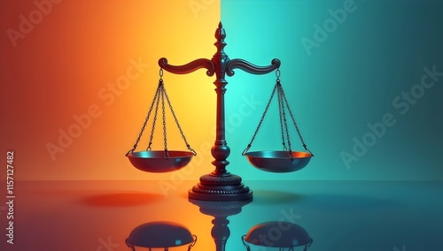 Balanced Justice: Scale Highlighted by Warm and Cool Light, Symbolizing Fairness and Equality