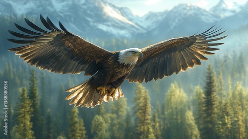 Bald eagle gliding wild alpine forest freedom symbol wilderness captured perfectly Photo