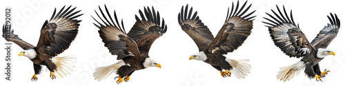 Bald eagle in flight, isolated on a white background.