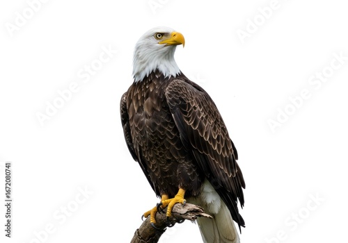 Bald Eagle Perched on Branch with White Background