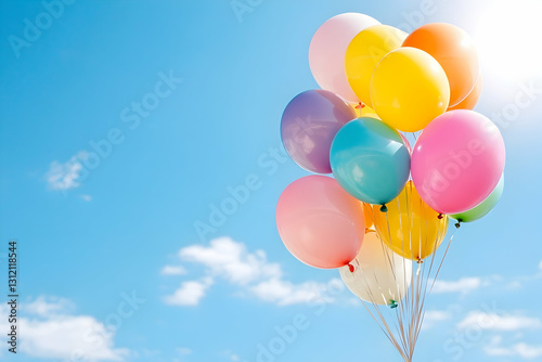 balloon, sky, cloud, blue, colourful, bright, party, celebration, fun, joy, helium, festive, vibrant, pastel, light, airy, sunshine, summer, air, event, birthday, holiday, happy, cheerful, floating, bunch, decoration, uplifting, carefree, background, freedom, positive, optimistic, outdoors, nature, sunny, cloudscape, whimsical, playful, serene, peaceful, clear, day, scenic, vista, view, weather, up high