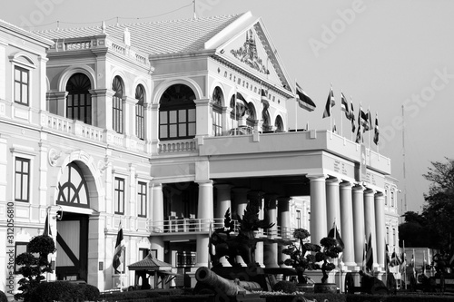 bangkok, siam, asia, asian, ministry, defense, building, architecture, beautiful, travel, destination, sightseeing, tour tourism, orient, oriental, siam, siamese, landmark, famous, exterior, ornate, ornamented, ornamental, indochina, old, vintage, retro, tone, style, colours, black, white, bw, black-and-white, black-and-white, monochrome