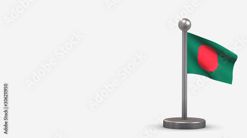 Bangladesh 3D waving flag illustration on tiny flagpole.