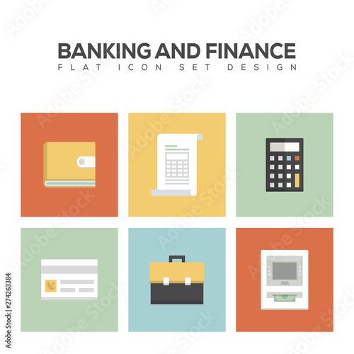 BANKING AND FINANCE FLAT ICON SET