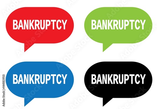 BANKRUPTCY text, on rectangle speech bubble sign.