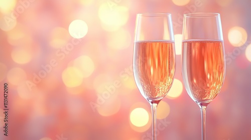 Banner of festive glasses of champagne on light Bokeh background 4k image