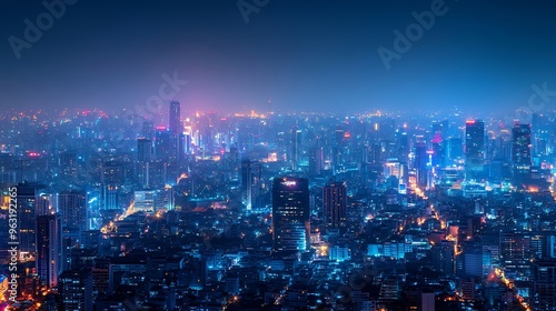 Banner smart city dot point connect with gradient line connection technology metaverse concept Bangkok city background at night with big data in Thailand Panorama view : Generative AI