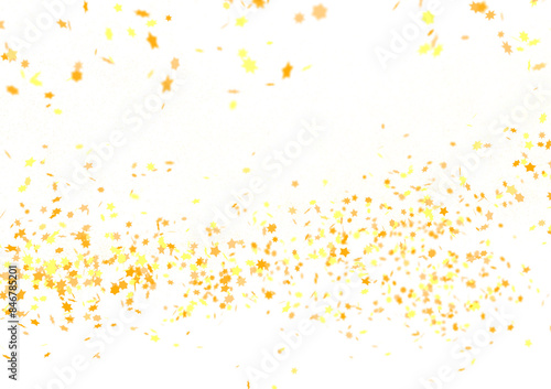Banner with golden stars decoration. Festive border with falling glitter dust and stars.