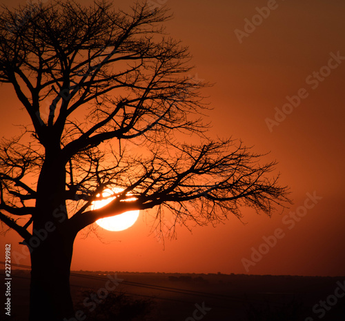 baobab, tree, botswana, sunset, orange, deciduous, adansonia, dusk, africa