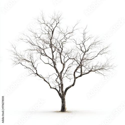 Bare Tree's Silent Story: A solitary tree, its skeletal branches reaching skyward against a simple backdrop, embodies nature's raw beauty and the quiet strength of resilience.