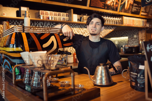 barista, cafes, hot drink, cappuccino, latte, espresso, drink, preparing, shop, food, man, standing, business, adult, occupation, casual attire, people, caucasian, young, employee, machine, job, clothing, preparation, grinder, 1, local, selective, person, concentrating, working, space, indoor, side, bar, cup, eatery, professional, concept