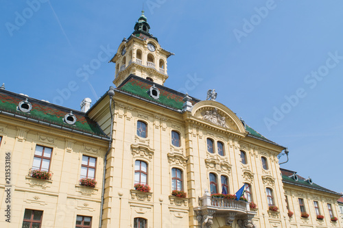 baroque, facades, hall, hungary, architectural, architecture, art, building, city, construction, county, europa, european, exterior, famous, history, hungarian, landmark, largest, old, outside, style, tour tourism, town, city hall, travel, vacation, yellow