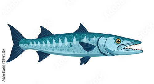 Barracuda Fish Illustration Isolated on White Background Underwater Marine Life