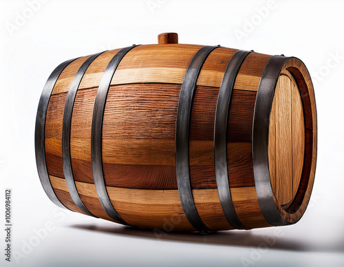 Barrica de vino de madera aislada en fondo blanco