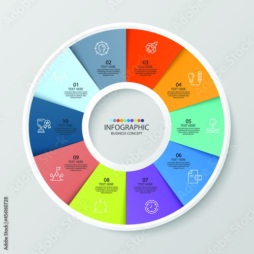 Basic circle infographic template with 10 steps, process or options, process chart.