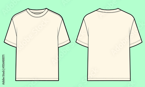 short sleeve, vector, front view, backview, half face, casual clothes, technical drawing, textile design, digital artwork, modern style, activewear, t-shirt, tee