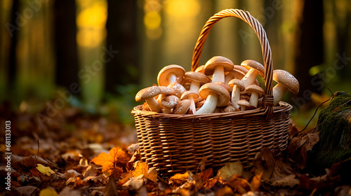 forest, mushroom, fresh, brown, edible, organic, autumn, seasonal, boletus, nature, basket, food, grass, natural, fall, season, harvest, closeup, green, white, wild, fungal, leaf, healthy, eatable, plant, meadow, wicker, raw, vegetarian, summer, delicious, epicure, eat, vegetable, diet, copy space, banner, environment, grow, background, leaf, pecking, generative, ai, mushroom, freshly