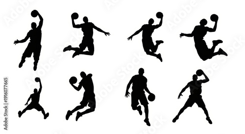 Basketball Player Silhouettes: Dynamic Jump Shots and Slam Dunks Collection