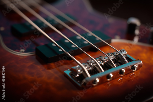 bass guitar, bridge, string, bass, tortoiseshell, music, rythm, sound, musician, band, performance, hobby, leisure, recreation, artistic, shine, closeup, electric, vintage, professional