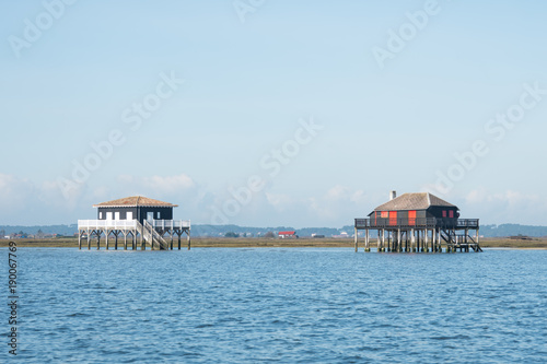 BASSIN D'ARCACHON (France), les célèbres cabanes tchanquées à l'île aux oiseaux