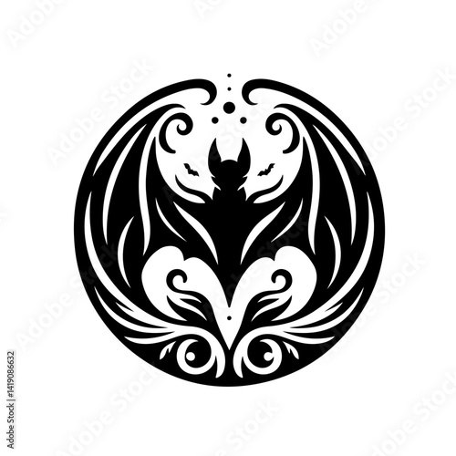 bat as a logo icon silhouette black and white vector illustration, isolated on background