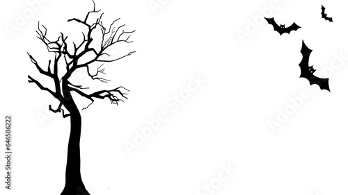 Bats, grave and Halloween trees with transparent background. Simple Halloween background. Halloween elements with transparent background.