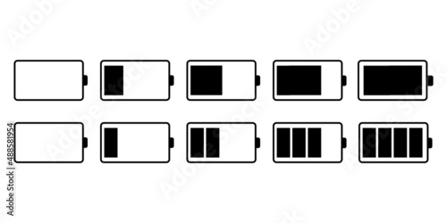 battery pack web icons (charge level indicators, batteries). On a white background. vector illustratio