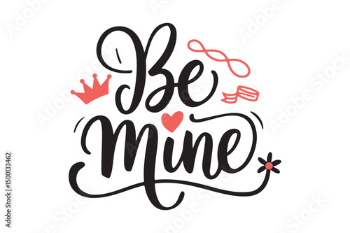 be, mine, love, nubes, crown, cute, romantic, sweet, flower, fun, pink, black, typography, calligraphy, lettering, valentine, greeting, card, message, joy, passion, script, adorable, flirt, charme, holiday, design, emotion, lovely, happy, playful, graphic, celebration, doodle, decorative, date, romanticism, note, art, stylish, modern, coquettish, swoosh, couple, vibrant, quote, affection