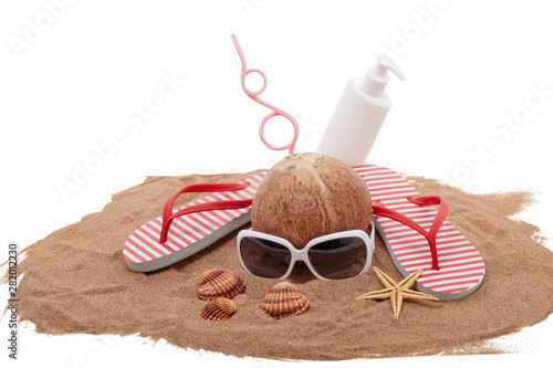 accessory, background, beach, beverage, bottle, closeup, cocktail, coconut, concept, copy space, drink, drinking straw, fashion, female, footwear, holiday, leisure, lifestyle, marin, nobody, protection, red, relax, rest, sand, sea, seashell, shoe, skin, slipper, starfish, still life, straw, striped, summer, summer, sun, sunblock, sunglasses, sunny, sunblock, tour tourism, travel, ultraviolet rays, vacation, white